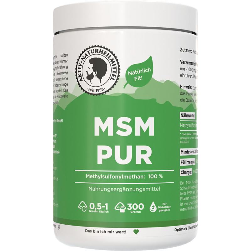 Durch den aufwendigen Herstellungsprozess garantieren wir unseren KundInnen, dass pures MSM bei ihnen ankommt. Mit den gelieferten 300 Gramm unseres Premiumprodukts lässt sich eine drei- bis sechsmonatige Kur durchführen. Je nach Bedarf empfehlen wir bis zu zwei Gramm täglich in Flüssigkeit einzurühren.